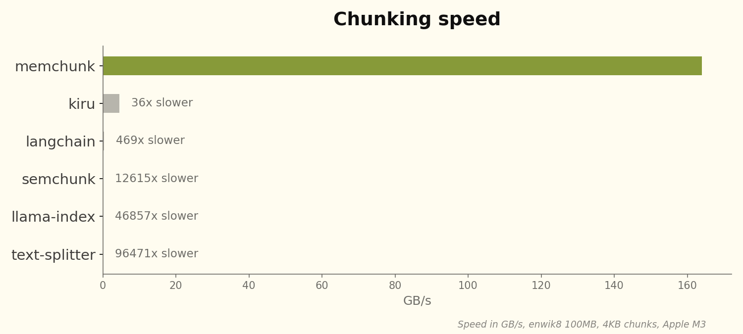 | semchunk | 0.013 GB/s | 12,615x slower |